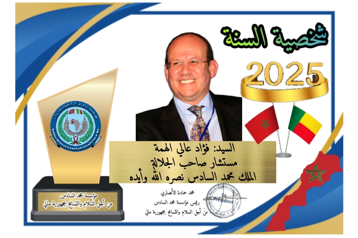 أعلنت مؤسسة محمد السادس من أجل السلام والتسامح بجمهورية مالي عن اختيار فؤاد عالي الهمة، مستشار صاحب الجلالة الملك محمد السادس نصره الله وأيده، شخصية السنة لسنة 2025، تقديراً لمساره السياسي والوطني وإسهاماته في خدمة القضايا الكبرى للمملكة المغربية.